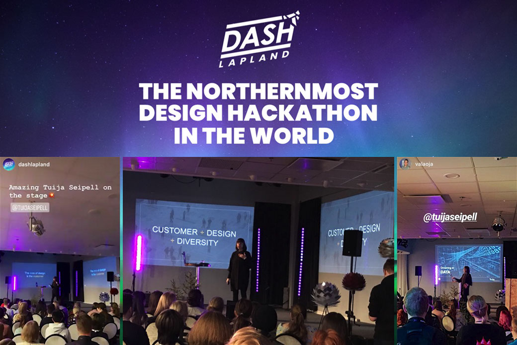 In April 2019, Tuija was keynote speaker at Dash Lapland in Rovaniemi, Finland. Billed as “the northernmost design hackathon in the world,” the event collected challenges from six real-life businesses and challenged multidisciplinary participants to come up with innovative solutions. Tuija inspired those participants by linking Customer + Design + Diversity.